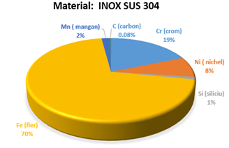 -Cel mai des utilizat aliaj fiind Otelul SUS-304 sau otelul denumit 18/8. Acesta contine 18% crom si 8% nichel. Mai este denumit si Inox alimentar si il regasim in mod obișnuit la cuțite de bucatarie, vase de gătit fine, tacâmuri și chiuvete de calitate.