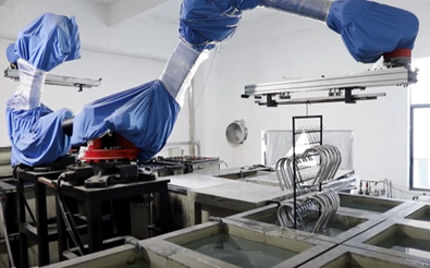 Etapa intermediara in procesul de fabricatie al unei baterii sanitare este si aplicarea culorii sau a stratului de vopsea ales. Acest proces este similar celui de galvanizare si are ca rezultat aspectul cromat al produsului sau culoarea finala.
